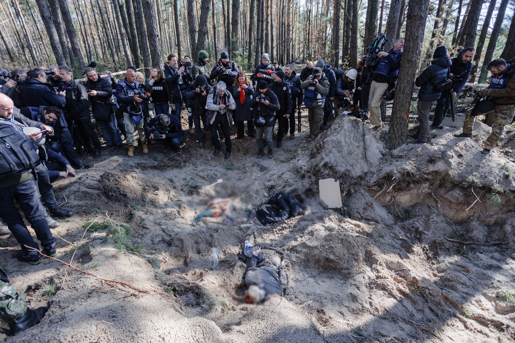 – Отам у ямі лежать мої родичі, – каже він тихо, не піднімаючи голови. – Вони не були військовими, вони не несли ніякої загрози. За що їх вбили? За те, що вони українці! Це споконвічна задача росіян – щоб не було українців. Вони віками це робили і знову почали.