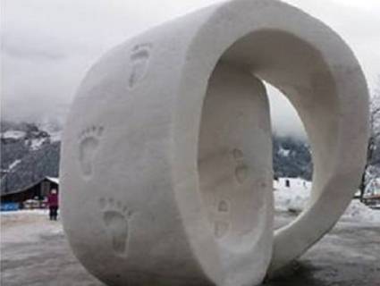 Українська команда зі снігового блока заввишки 3,5 метра випиляла скульптуру «Спіраль Часу». На її створення хлопці витратили чотири дні.