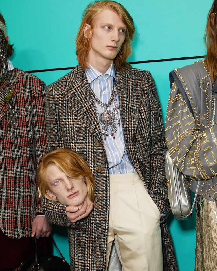 На представленому в Мілані показі Gucci моделі виходили на подіум, несучи як аксесуари… свої голови. Про це повідомляє reuters.com.