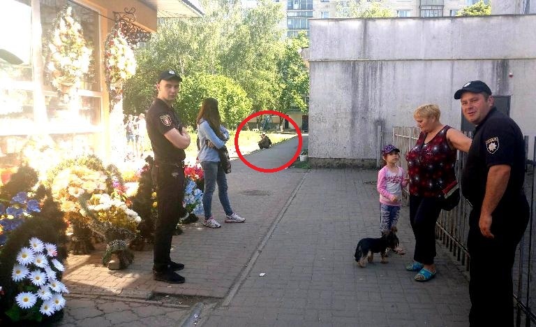 Таку поведінку продавчині квітів утомилися терпіти, а тому викликали патрульну поліцію. Два представники поліції, що прибули на місце події, лишень розводять руками. Вони стежать, аби дії хулігана не переросли у бійку. У наркодиспансер правоохоронці його не можуть забрати, оскільки той «ще тримається на ногах, хоча й видно, що хильнув добряче».