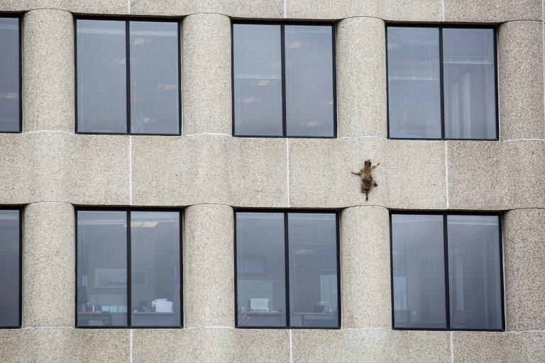 Звірок штурмував висотну офісну будівлю у 23 поверхи і примудрився видертися на 17-й поверх.