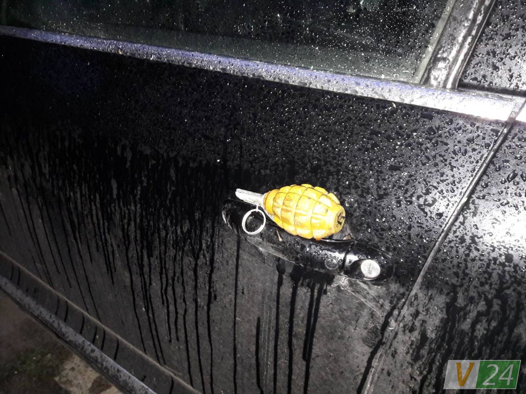 У Луцьку підприємець Олег Нежур знайшов на дверній ручці свого автомобіля Фольксваген Туарег предмет, схожий на гранату Ф1.