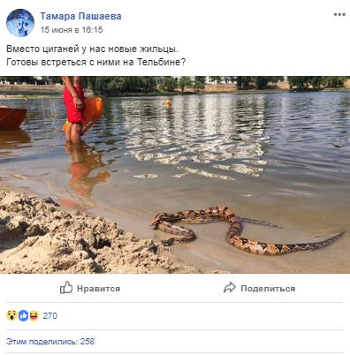 Щодо фото пітонів на пляжі Тельбін місцеві жителі припустили, що це чиїсь домашні вихованці, а біля озера відпочиваючі нібито бачили чоловіка, який ніс пітонів на собі, а після вигулював їх на траві.