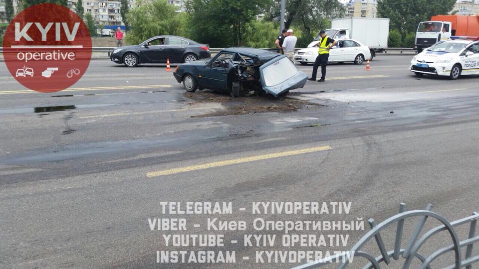 За даними порталу «Київ Оперативний», у результаті аварії у водія вітчизняного авто лікарі попередньо діагностували поламані ребра та серйозну травму спини.