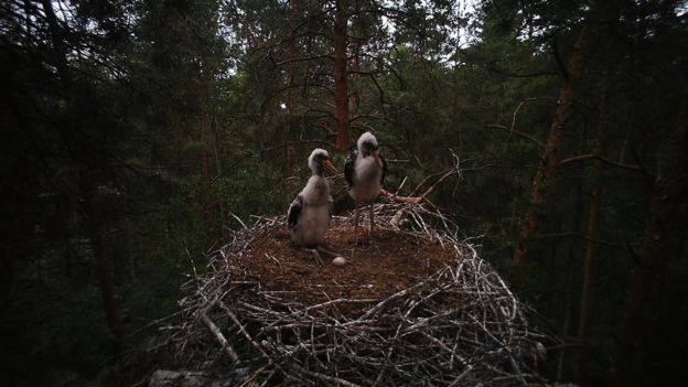 І ви помилуйтеся унікальними знімками не просто із лелечого гнізда, а з гнізда сімейства чорних лелек.