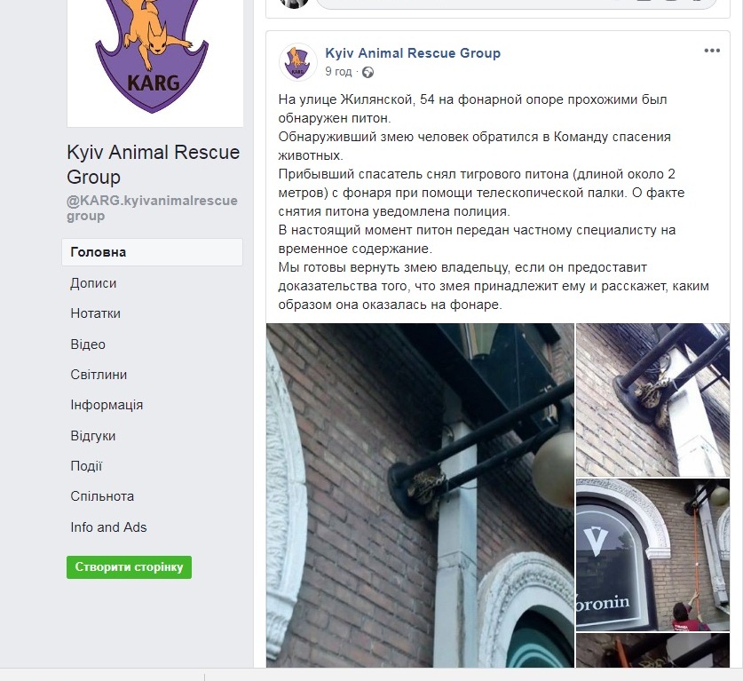 Людина, яка виявила змію, звернулася до Команди порятунку тварин, йдеться у її повідомленні у Facebook.