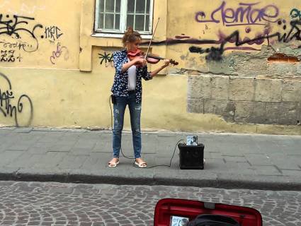 Львівські правоохоронці встановлюють особу хулігана, котрий собі за мішень обрав дівчину-скрипальку, що грала на інструменті в центрі Львова. Про це інформує Відділ комунікації поліції Львівської області.
