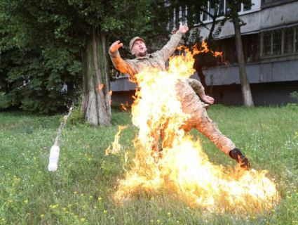 Полум’я охопило чоловіка в камуфляжі за лічені секунди. На щастя, людям, які були присутні на акції, вдалося збити Ульянова з ніг у траву і погасити вогонь вогнегасником. Армійські колеги чоловіка знали про його плани підпалити себе і завадили йому здійснити самоспалення.