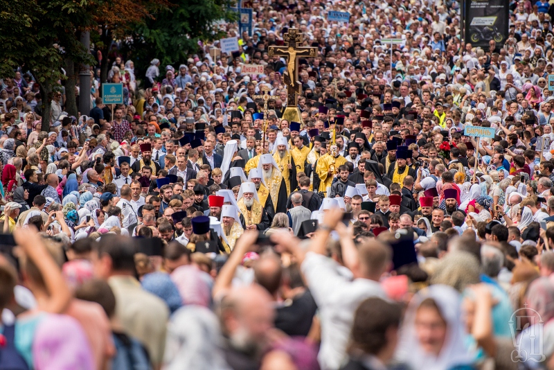 Велелюдна хода прямувала центральними вулицями Києва до Києво-Печерської Лаври, де відбувається всенічне богослужіння.