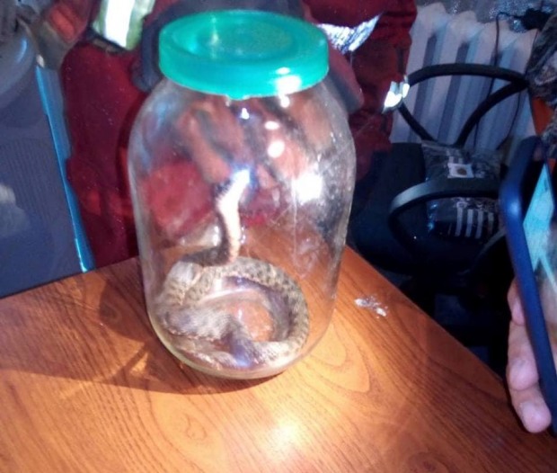 Прибулі на місце події рятувальники зловили змію за допомогою пристрою для вилову змій. Плазун був завдовжки 50 см.