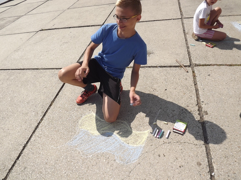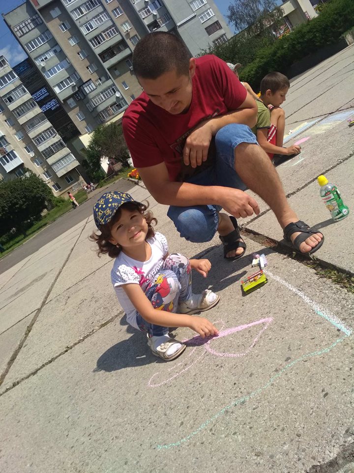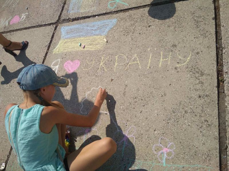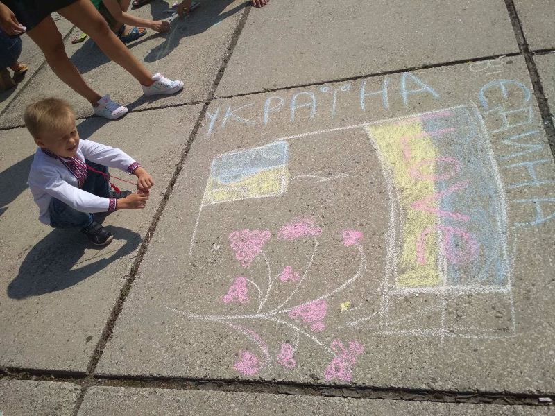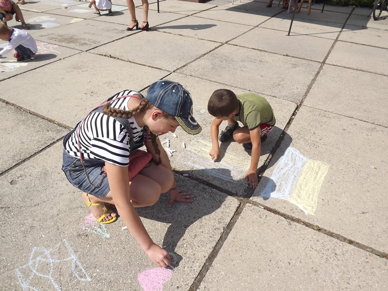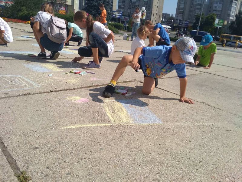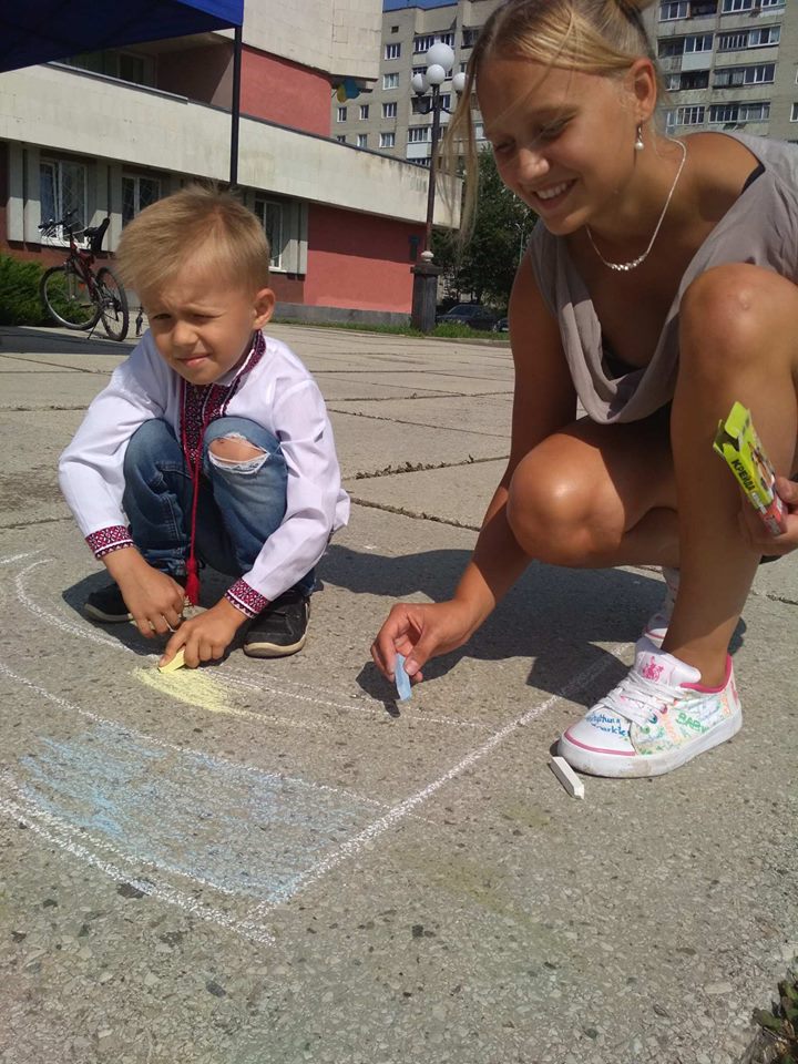 Навіть найменші учасники також старалися кольоровою крейдою залишити на асфальті свій шедевр.