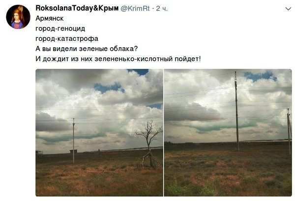 «Армянськ місто-геноцид, місто-катастрофа. А ви бачили зелені хмари? І дощить із них зелененько – дощ піде!» – підписав автор фото у мікроблозі «Роксолана Тудей» у «Твітер».