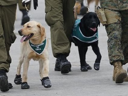19 вересня в чилійській столиці Сантьяго-де-Чилі пройшов парад військової поліції, але головними героями цього заходу стали не браві карабінери, а їхні службові собаки. Дорослих лабрадорів взули в черевички, а малюків несли в терморюкзаках, щоб не змерзли. Бо погода, як для цих країв, стояла холодна – повітря заледве нагрілося до 18 градусів за Цельсієм. Пише ресурс Фішки.