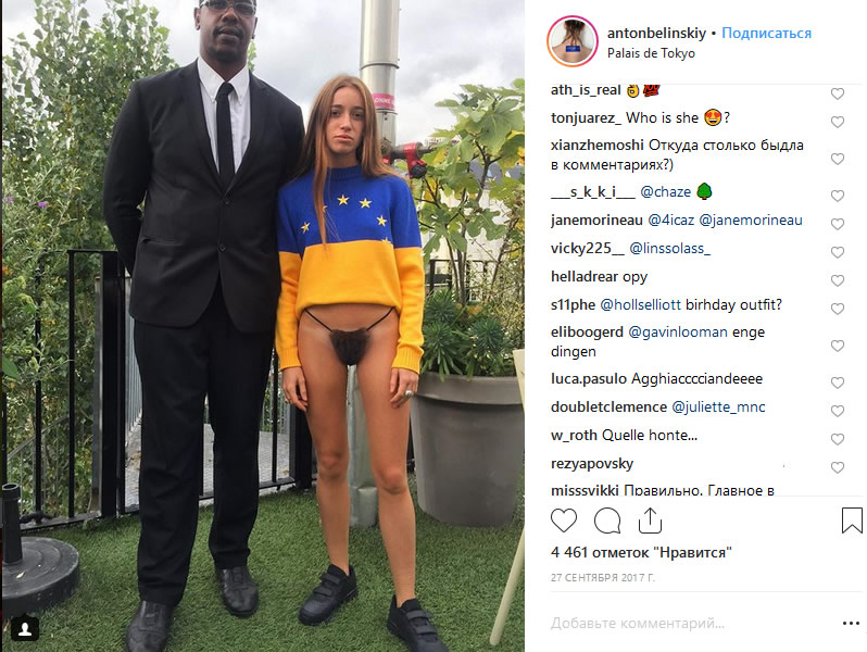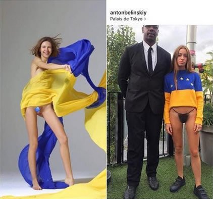На фото українська модель, яка демонструє одну із його робіт. Цікаво, що саме хотів передати митець цим образом?