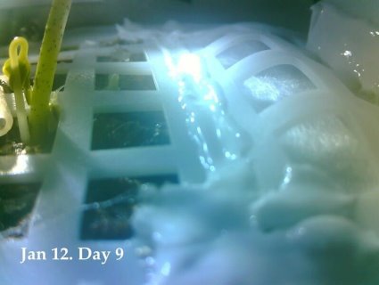 Ось так з’являлися проростки бавовнику на Місяці. Третьої доби в деяких комірках можна побачити насінини, з яких проклюнулися сім’ядольні листочки. А вже через 12 днів китайський зонд передав на Землю фото, на якому видно паростки бавовнику.