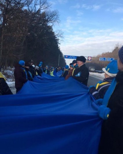 Так День Соборності відзначили у Клевані. Український прапор розтягнули від вказівника Волинської області до вказівника Рівненської.