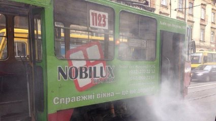 В останній день січня по вулиці Степана Бандери у Львові під час руху диміти трамвай.