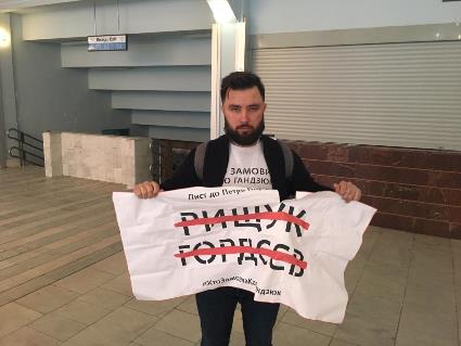 Натомість двоє охоронців перешкодили Миколі Виговському, а плакат розірвали.