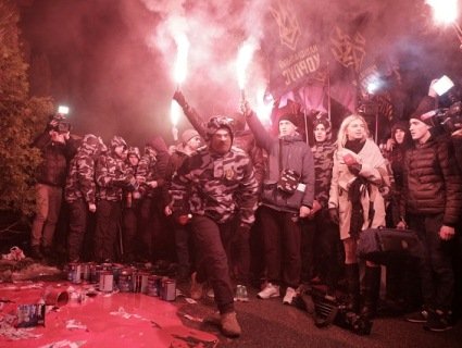 Націоналісти із фаєрами і «кров’ю» протестують під маєтком фігуранта «оборонного» скандалу