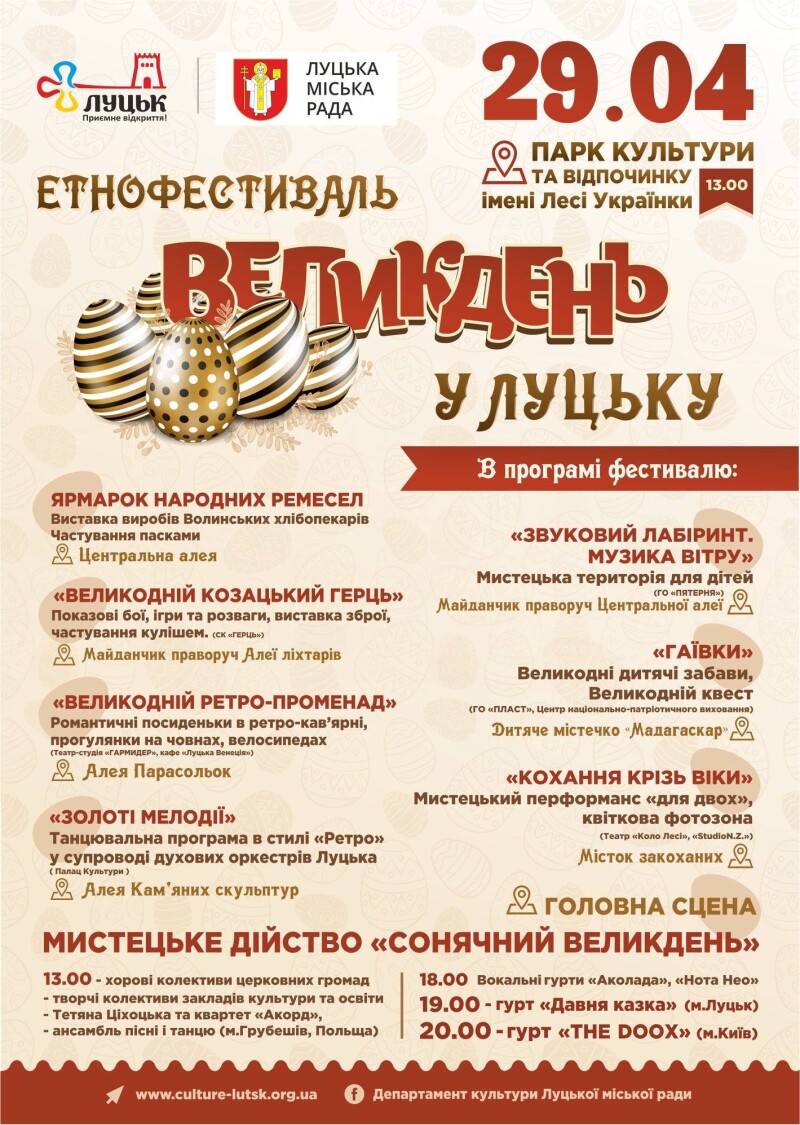 29 квітня, на другий день Великодня, в обласному центрі Волині відбудеться традиційний етнофестиваль «Великдень у Луцьку».