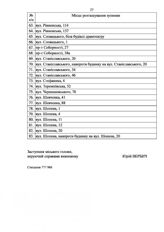 - перенесення зупинки на вул. Ветеранів (біля будинку на пр-ті Соборності, 13б) до будівлі на пр-ті Соборності, 21а;