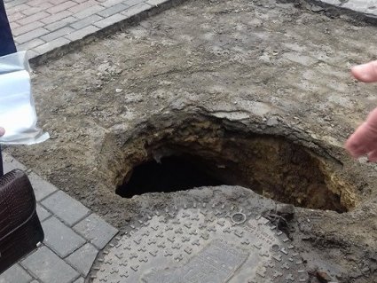 У самісінькому центрі Луцька – на перехресті вулиць Кривий Вал та Лесі Українки – виникло провалля.