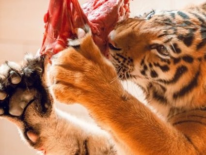 Ще однією цікавинкою дійства стала показова годівля. А оскільки ці великі кішечки теж потребують розваг, обід їм «ускладнили» – м'ясо та яйця 4-річні тигри Тамерлан та Аїда шукали у коробках, а однорічна Тріша – діставала зі спеціальної підвіски. У захваті були і смугастики, і глядачі.