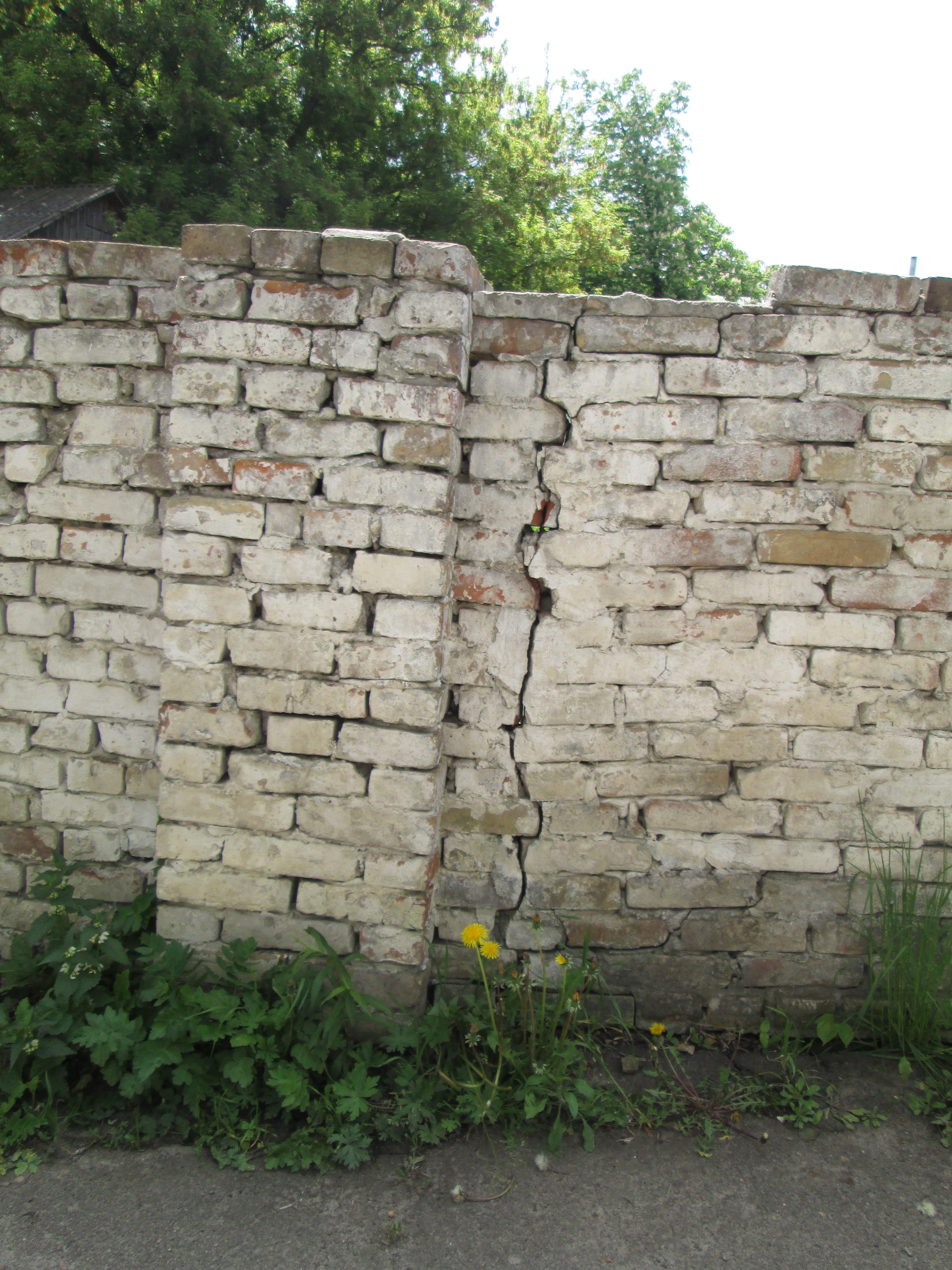 «Загорожа викладена з добротної цегли старого зразка, проте матеріал, що її колись з’єднував, став зовсім непридатним. У результаті в кладці утворилися великі дірки, тріщини і просідання. Проблема також у тому, що огорожа зводилася без фундаменту, тобто фактично стоїть без опори на сирій землі. Тому будь-якого моменту може впасти», – зазначає він.