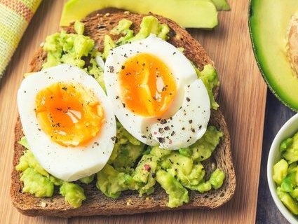 1. Яйця, тост з авокадо і чорниця. Тост зі злаками, пюре з авокадо і смажене на повільному вогні яйце. Все це приправити свіжими травами і червоним перцем. Чорниця і трави - прекрасні антиоксиданти, а червоний перець стимулює систему кровообігу.