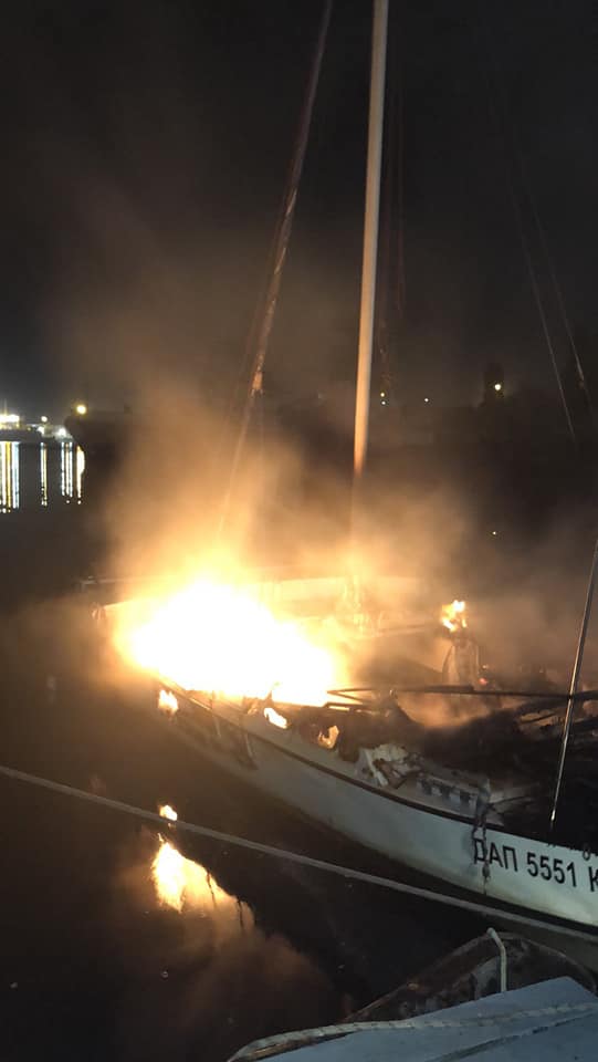Спочатку про пожежу на яхті місцевого депутата повідомила Марія Трофонія.