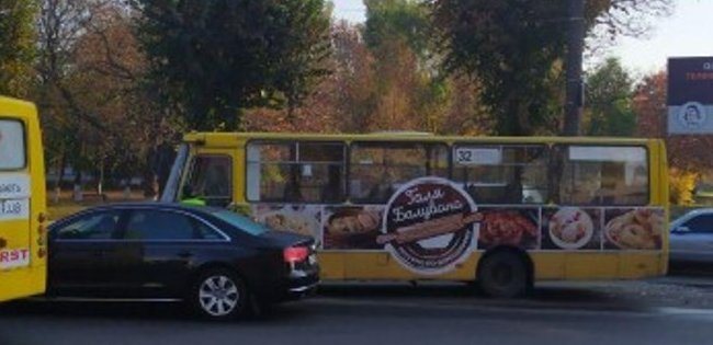 Audi сірого кольору отримала значні механічні ушкодження передньої частини. Audi чорного кольору та маршрутне таксі зазнали незначних пошкоджень, у Mercedes також розбира передня частина.