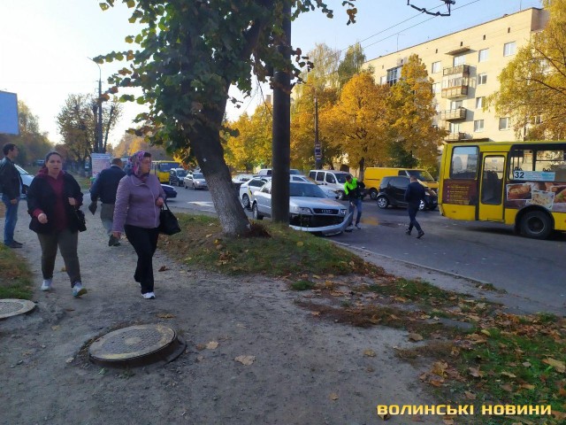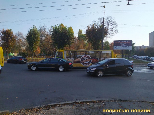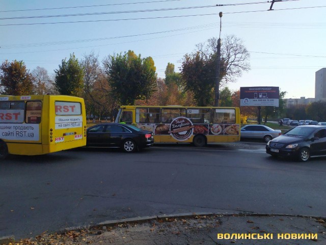 Так, на проспекті Відродження, на перехресті з вулицею Писаревського, трапилася аварія за участю чотирьох транспортних засобів: маршрутки № 32, мікроавтобуса Mercedes та двох автівок марки Audi, пише ІА Волинські Новини.