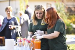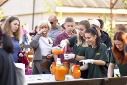 Після виступів гостей, як належить на дні народження, розрізали святковий торт, яким частували всіх охочих. Також діти отримали солодкі подаруночки — печиво-звіряток. Протягом дня відвідувачів пригощали різноманітними смаколиками з гарбуза, а також солодощами та чаєм.