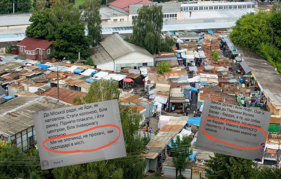 «Підпал машин Луцькради» і «ніяких мирних протестів»: що пишуть в чаті «Порятунок Центрального ринку» (доповнено)