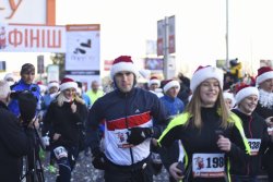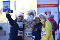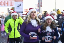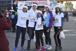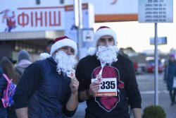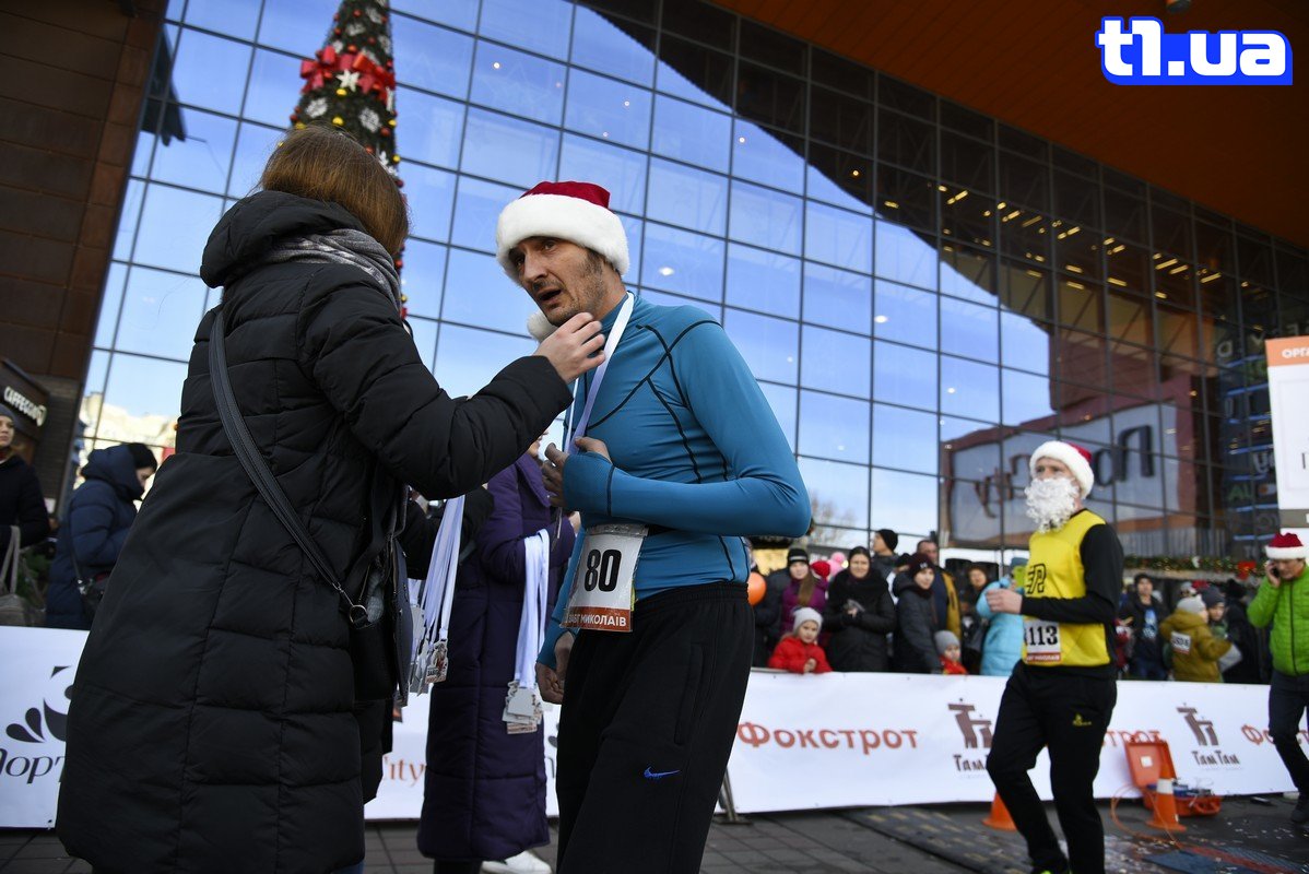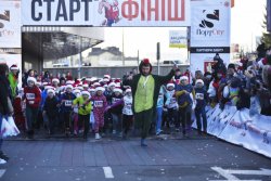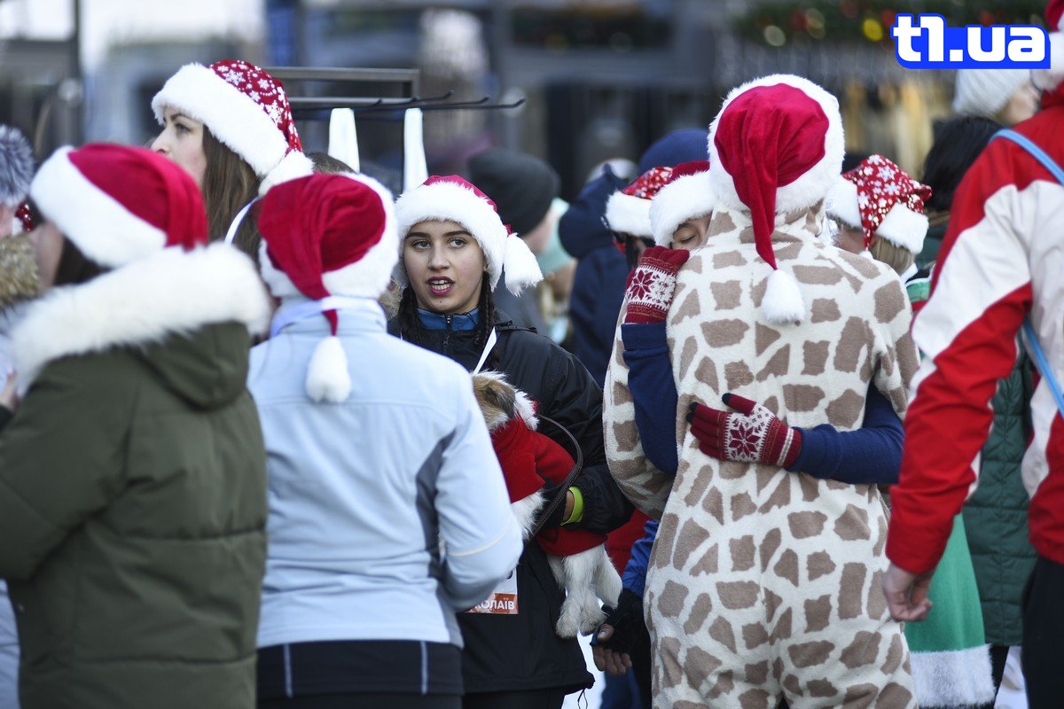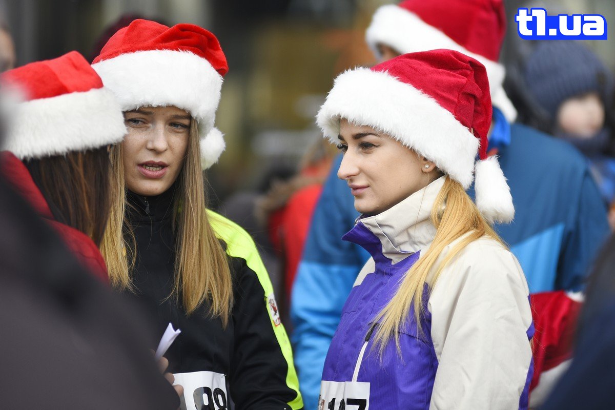 Спочатку учасники добряче розім’яли м’язи. До слова, кожному із них видали спеціальну наклейку з номером та святкову червону шапку. Дехто, щоправда, підготувався ґрунтовно й прийшов на забіг у костюмі казкового, мультяшного чи новорічного персонажа чи навіть супергероя. Деякі з персонажів приєдналися до учасників, спустившись із даху ТРЦ «ПортСіту».