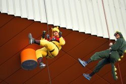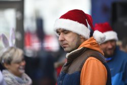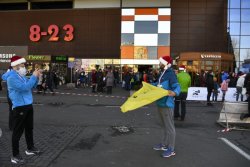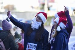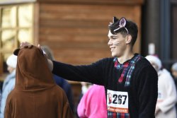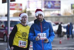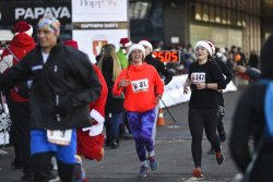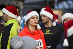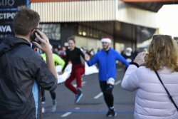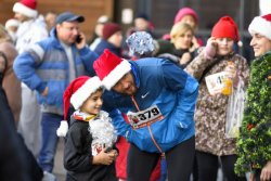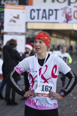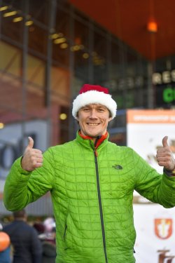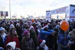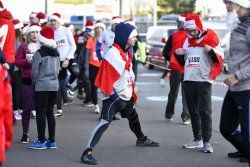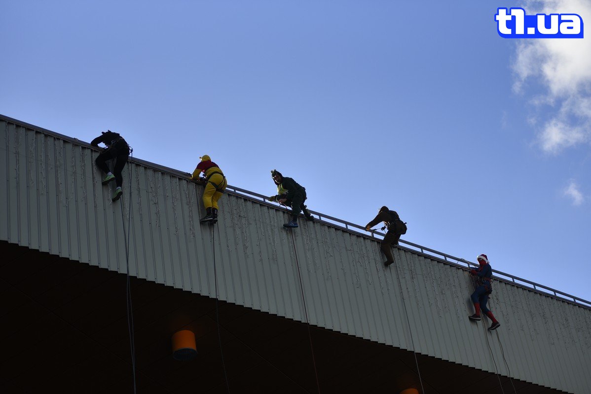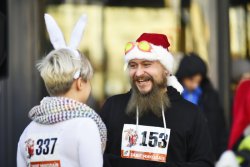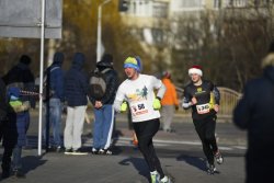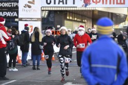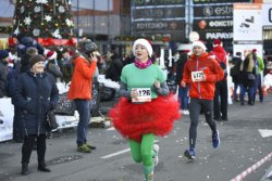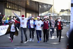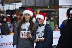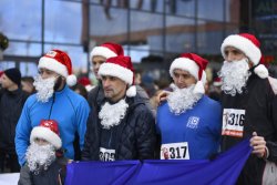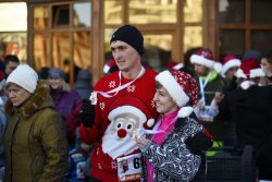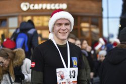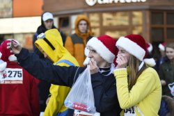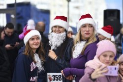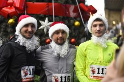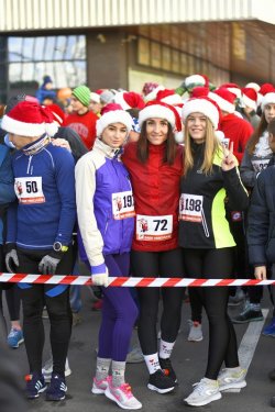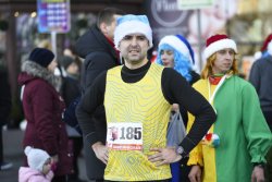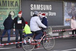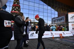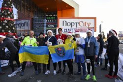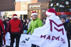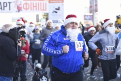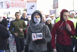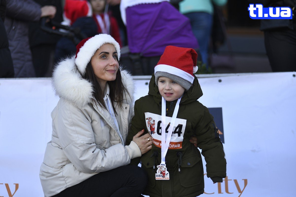 Спочатку учасники добряче розім’яли м’язи. До слова, кожному із них видали спеціальну наклейку з номером та святкову червону шапку. Дехто, щоправда, підготувався ґрунтовно й прийшов на забіг у костюмі казкового, мультяшного чи новорічного персонажа чи навіть супергероя. Деякі з персонажів приєдналися до учасників, спустившись із даху ТРЦ «ПортСіту».