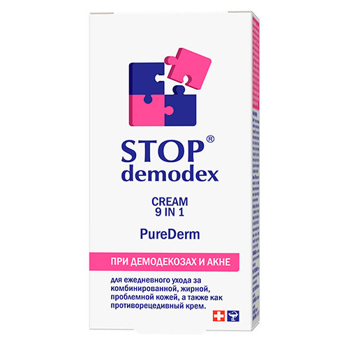 Для корекції недоліків жирної та комбінованої шкіри я рекомендую новинки із серії «STOP démodéx» – крем і маску 9 в 1 PUREDERM, які мають протизапальну, антибактеріальну та кератолітичну дію.