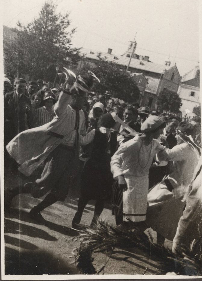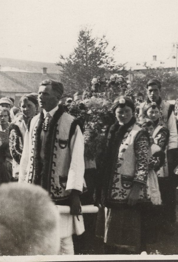 Нам вдалось розшукати фотографії святкування свята Обжинок на Тернопільщині в 1930-х роках. На фото бачимо місцеве населення одягнене у святковий одяг. Варто сказати, що наші предки ставились з обрядів, пов’язаних із їжею та врожаєм із величезною повагою, адже для селян врожай відігравав важливу роль в житті. Після таких свят були масові гуляння, танці та співи. Можна сказати, що після місяців роботи на полі, селяни дозволяли собі відпочити та порадіти.