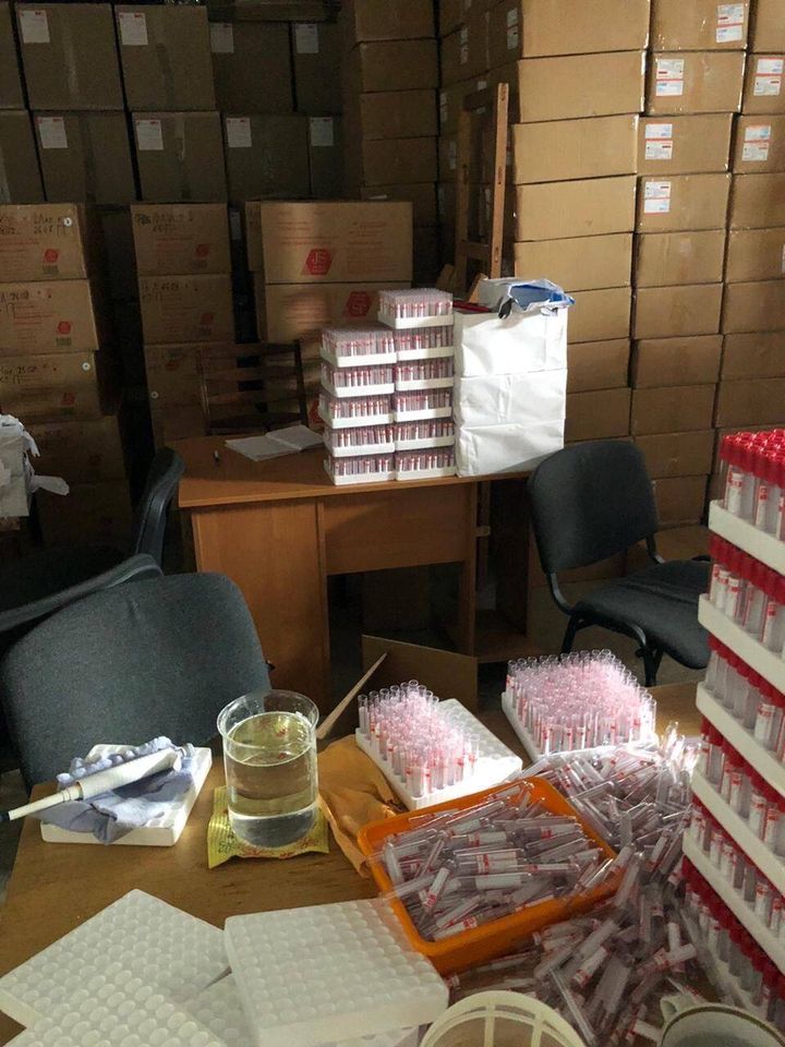 Зазначається, що виробництво наборів проводилось з грубим порушенням правил та норм їх виготовлення. У шахраїв вилучили засоби для тестування на суму близько 12 мільйонів, 200 тисяч одиниць готових наборів, а також сировину для виробництва ще біля 400 тисяч.