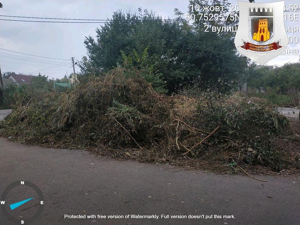 Інспектори департаменту муніципальної варти Луцької міської ради відреагували на звернення щодо звалювання гілля та зілля біля майданчику для збору побутових відходів на вулиці Богомольця, 2.