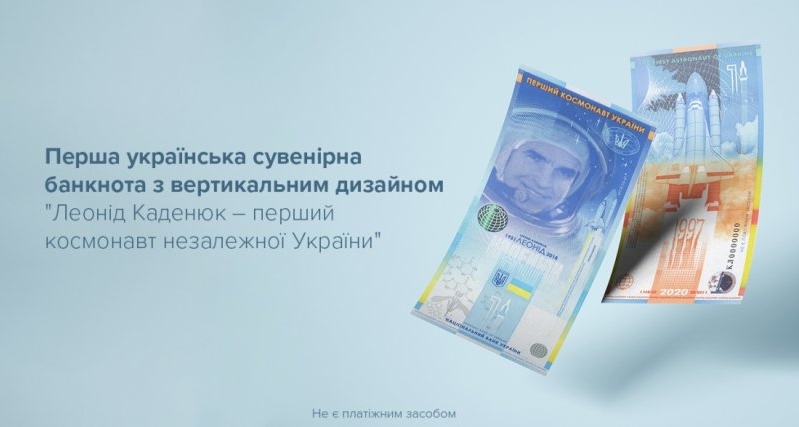Банкнота називається «Леонід Каденюк — перший космонавт незалежної України», це перша сувенірна банкнота з вертикальним дизайном.
