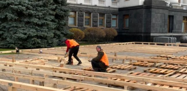 У Києві на вулиці Банковій президента монтують ковзанку.