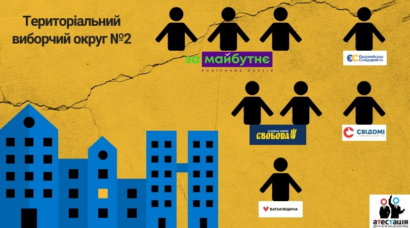 Територіальний виборчий округ №2 у Луцькій міській раді будуть представляти 8 депутатів. Зокрема, Роман Кравчук, Вікторія Майборода та Ігор Курілін («За майбутнє»), Микола Яручик («Європейська Солідарність»), Михайло Наход («Громадянський рух «Свідомі»), Андрій Білан і Алла Жупанюк (ВО «Свобода»), Андрій Авраменко (ВО «Батьківщина»).