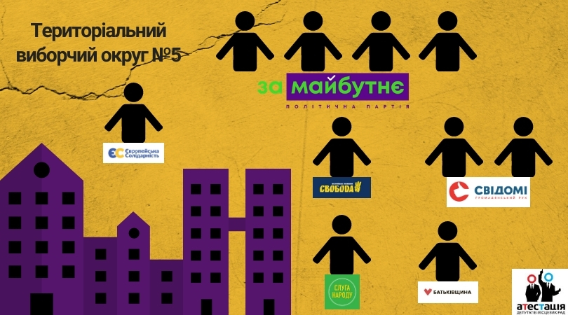 Представниками територіального виборчого округу №5 стали одразу 10 новообраних депутатів. Ними є: Олег Тарасюк, Андрій Разумовський, Катерина Шкльода і Віталій Бондар («За майбутнє»), Валентина Малютіна («Європейська Солідарність»), Андрій Лучик і Валентин Хаймик («Громадянський рух «Свідомі»), Михайло Щур (ВО «Свобода»), Оксана Руднік («Слуга народу») та Олександр Козлюк (ВО «Батьківщина»).