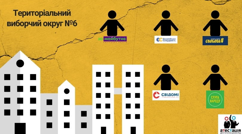 Ще 5 депутатів Луцької міської ради будуть представляти територіальний виборчий округ №6. З-поміж них: Юрій Безпятко («За майбутнє»), Олександр Ніколайчук («Європейська Солідарність»), Алла Надточій («Громадянський рух «Свідомі»), Володимир Пшибельський (ВО «Свобода»), Олександр Ткачук («Слуга народу»).