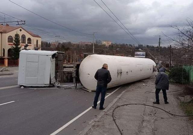 Інцидент трапився о 26 грудня, о 13:58 у Житомирі, на вулиці Чуднівській. Водій газовозу не впорався з керуванням та допустив зіткнення з тролейбусною електроопорою. У результаті цього машина перекинулася на бік.