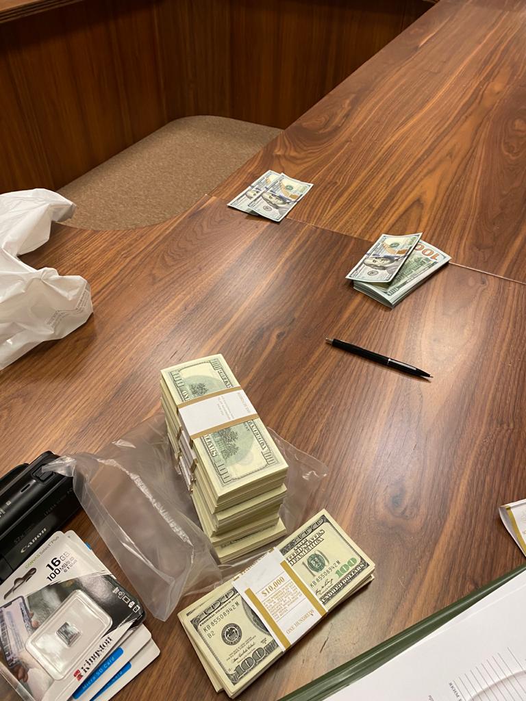 Під час одержання першої частини коштів у сумі 100 тис доларів США громадянина затримано в порядку ст. 208 КПК України.