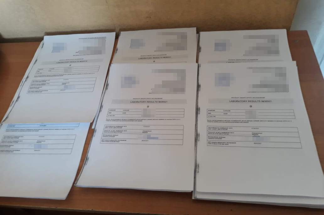 Під час перевірки пред’явлених результатів тесту на COVID-19 в інспектора прикордонного контролю виникли сумніви щодо їх дійсності. В ході більш ретельного дослідження прикордонники встановили, що бланки суттєво відрізняються від оригіналу, а також на них відсутні обов'язкові реквізити. Крім того, у кількох пасажирів охоронці кордону виявили довідки з однаковими номерами.