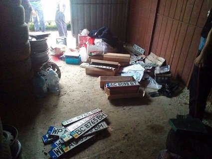 Серед номерів були транзитні і іноземні. Всі вони лежали в ящиках а сумках. Також в гаражі була виявлена велика кількість техпаспортів та інша документація.