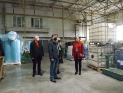Директор з економічного розвитку ПрАТ «Едельвіка» Оксана Антонюк провела екскурсію виробничими площами для Олександра Омельчука, його радника Юрія Ройка та депутатки районної ради Ольги Максим’як.